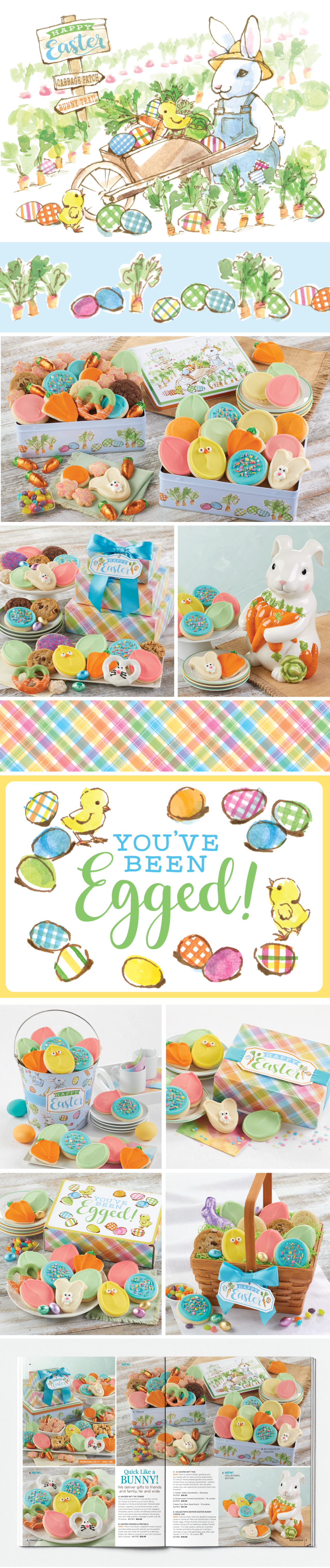 This Easter collection is one example of a project that I art directed with external illustrator, Robin Moro. The concept for the collection was “The Bunny Patch.” I was inspired by a garden theme with classic Easter characters in a storybook style. The collection included a bunny and his chick friends tending to the garden, a brightly colored stitched Easter plaid, and watercolor Easter eggs.